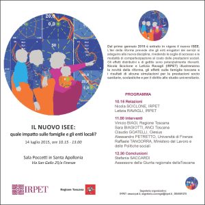 Nicola Sciclone e Letizia Ravagli (IRPET) illustreranno le novità della riforma, gli effetti sulle famiglie toscane e i risultati di alcune simulazioni per le prestazioni socio sanitarie, scolastiche e per il diritto allo studio universitario.